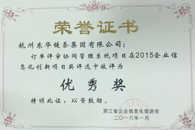 東華自創(chuàng)建以來,一直高度重視企業(yè)信息化建設(shè)工作,取得良好成效。日前,訂單評審協(xié)同管理系統(tǒng)被浙江省企業(yè)信息化促進(jìn)會授予“2015企業(yè)信息化創(chuàng)新項目優(yōu)秀獎”稱號。