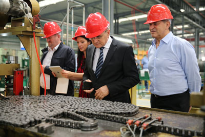 10月14日,與會人員共赴江蘇興化,參觀了興化東華齒輪公司和興化鏈條生產基地。大家在參觀中,不時舉起相機,拍攝精良的設備和生產現場;不時駐足留戀,細究產品的全制造過程,連對新購的156畝土地也頻頻舉起相機,記錄著一切。期間,大家紛紛贊嘆東華的穩健發展,特別是海外公司同事表示,親眼目睹興化鏈條生產基地后,對董事長宣碧華專注制造業,不斷新購土地建廠房,新購設備擴大生產,不斷做精做大做強企業的決心和實際行動表示敬佩,對把東華早日打造為世界一流的鏈傳動企業充滿信心。