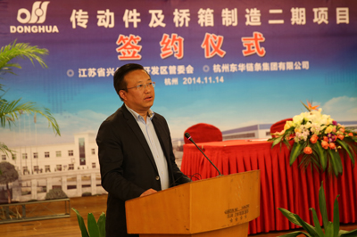隨后,興化市副市長(zhǎng)、興化經(jīng)濟(jì)開發(fā)區(qū)黨工委書記李斌致辭。他說,東華從2007年進(jìn)入興化,收購哺育了興化齒輪廠。2010年新上鏈條項(xiàng)目,這幾年東華在興化走過了一條不平凡的發(fā)展之路,為興化市的經(jīng)濟(jì)建設(shè)作出了積極的貢獻(xiàn)。這次東華把興化作為重要生產(chǎn)基地?cái)U(kuò)建,這對(duì)東華和興化都是一件非常重大的事情。對(duì)東華來說,不僅是量的擴(kuò)展,產(chǎn)量的增長(zhǎng),對(duì)企業(yè)轉(zhuǎn)型發(fā)展也有重要意義,他為打造全產(chǎn)業(yè)鏈、控制質(zhì)量、降低成本、縮短交貨周期、更好地開拓市場(chǎng),特別是國(guó)際市場(chǎng)具有重要的戰(zhàn)略意義。對(duì)興化而言也具有非常積極的意義,因?yàn)闁|華的發(fā)展,將引領(lǐng)我們整個(gè)興化機(jī)械制造行業(yè)乃至全市工業(yè)經(jīng)濟(jì)的發(fā)展。今天的簽約儀式,是一個(gè)重要的起點(diǎn),對(duì)我們來講是一個(gè)重大的發(fā)展機(jī)遇,具有戰(zhàn)略里程碑意義。我們將認(rèn)真地、積極地為這個(gè)項(xiàng)目的落地、推進(jìn)做好服務(wù)工作,讓他快速落地,健康成長(zhǎng)。