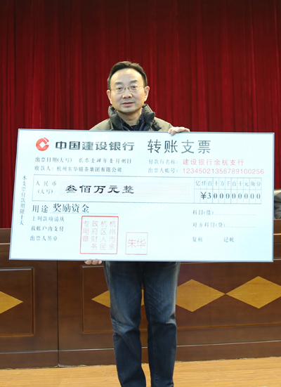 今年,余杭區只有東華集團和老板集團獲得“國家認定企業技術中心”稱號,杭州余杭高新園區孵化器公司獲得“國家級科技企業孵化器”稱號,三家單位各獲得區政府300萬元重獎。杭州市委常委、余杭區委書記徐立毅等領導向獲獎企業代表頒發了獎金,并作重要講話。
