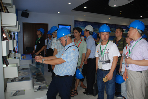 參觀團一行在劉小雨、劉冬根等人陪同下,參觀了東華三個廠區生產基地和產品展廳,重點參觀了公司在機器換人、智能制造、節能降耗、精益管理成效較好的生產車間。在交流會上,劉冬根處長向參觀團介紹了企業發展歷程、產業鏈構成、國際地位、產品及品牌、市場開拓及發展目標等情況,特別介紹了“機器換人”的發展歷程、重點實施項目及成效;劉小雨主任介紹了公司在物聯網、智能制造等方面的發展歷程、積累的經驗及取得的成效。參觀團成員紛紛踴躍提問及咨詢,集團各相關人員現場認真給予了滿意的解答。
