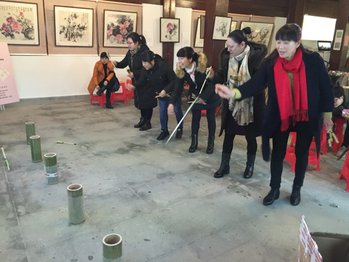 超山是國家AAAA級旅游景區,江南三大賞梅勝地之首。今天的超山梅花盛開,細雨蒙蒙,大家撐著雨傘,漫步在“十里梅花香雪海”中,盡情領略“煙雨梅林”的景致;觀“宋梅”賞“唐梅”,在“大明堂”品茶、賞名畫、聽課、看電影、游戲,玩的樂呵呵。