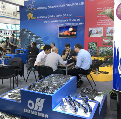 在本屆春季廣交會上,東華集團(tuán)國貿(mào)部以及盾牌事業(yè)部展出了精密滾子鏈、農(nóng)機鏈、工程鏈、不銹鋼鏈、板式鏈等東華鏈條優(yōu)質(zhì)產(chǎn)品,并且展示了東華最新版的公司宣傳片和最新版公司簡介,DONGHUA品牌深受來自世界各地鏈條采購商的青睞,很多客戶對DONGHUA品牌在其當(dāng)?shù)氐钠焚|(zhì)有所了解。