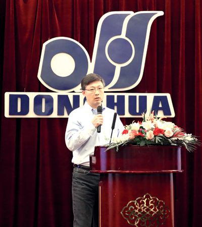 東華荷蘭公司總經(jīng)理Morskate就東華全球制造、品牌建設(shè)、銷售等進(jìn)行了匯報和展望。